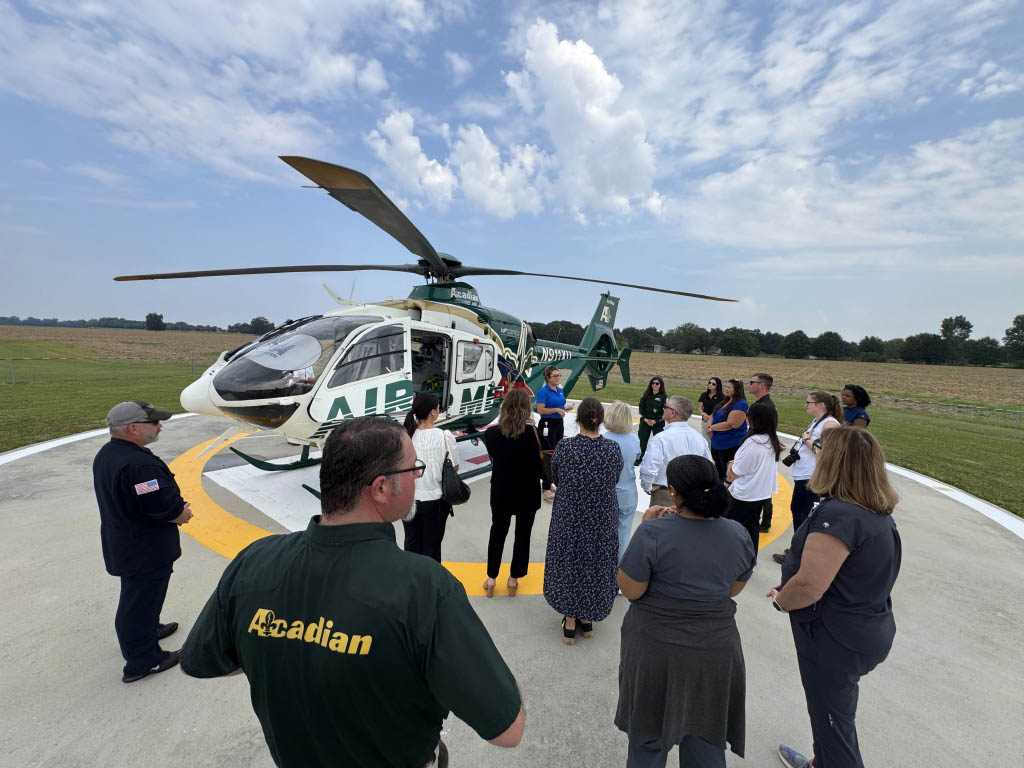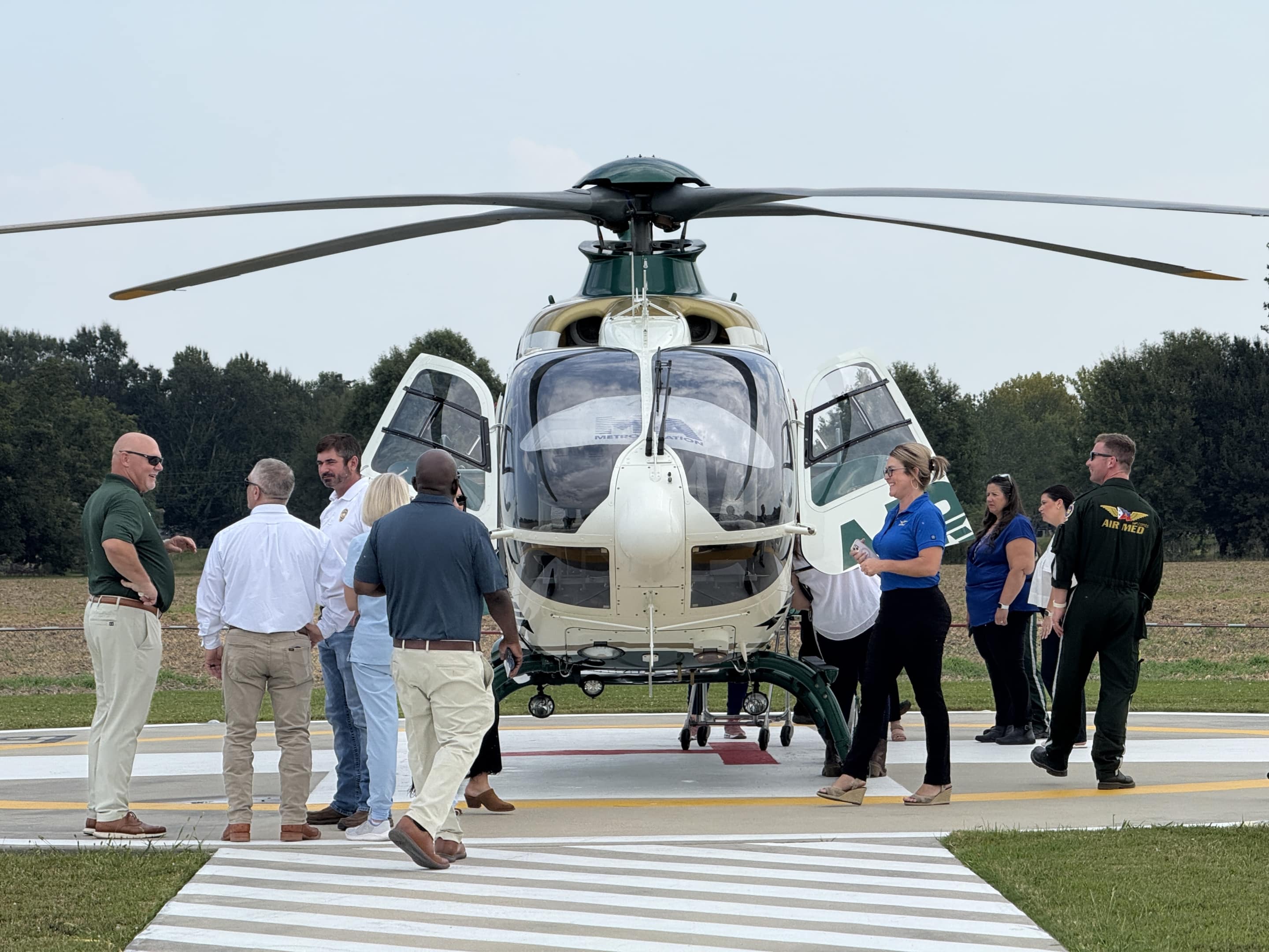 Team members from Acadian Ambulance and Acadian Air Med, as well as local business leaders and Chamber representatives participated in the ribbon cutting in front of the Air Med station. Attendees were able to meet with the Acadian team and tour the Air Med helicopter up close.