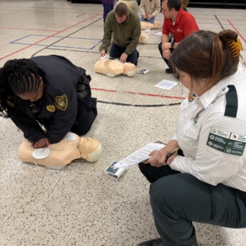 If encountering someone experiencing sudden cardiac arrest, it’s important to call 911 before beginning CPR or using an AED.