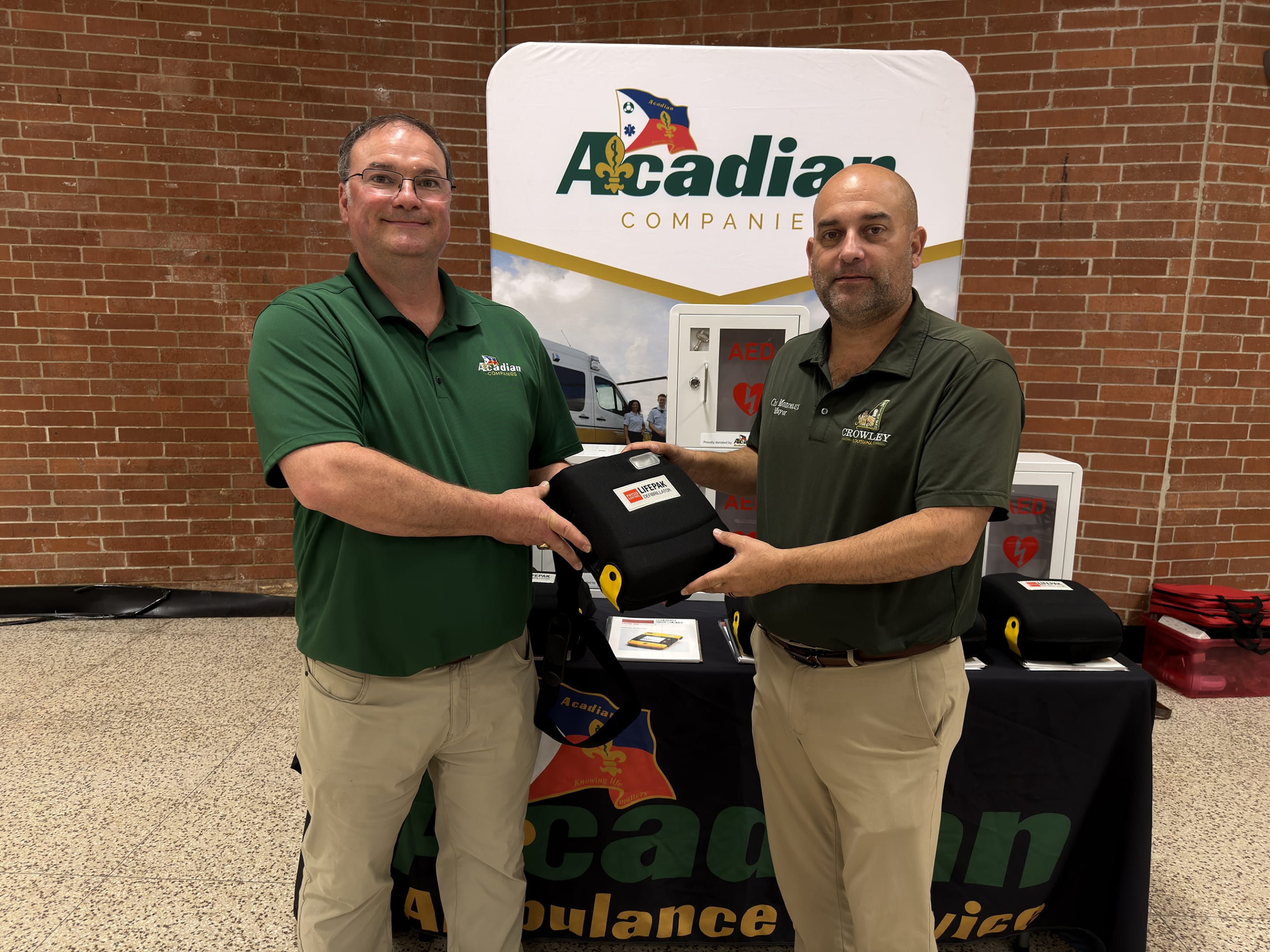 In addition to the donation, Acadian Ambulance provided Heartsaver CPR and AED training to 40 City of Crowley employees.