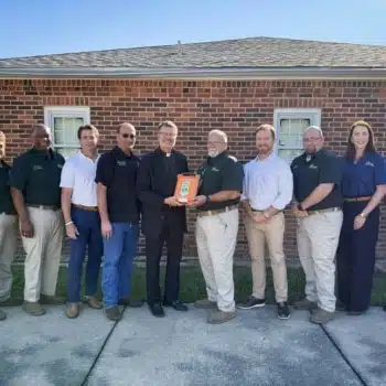 Acadian Ambulance and Youngsville Fire Department donate AED to St. Anne Catholic Church