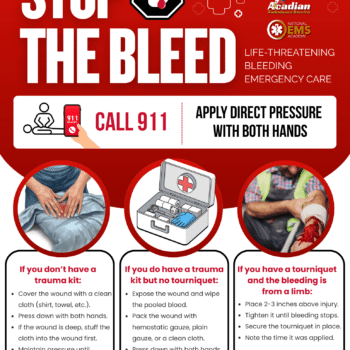 Acadian Ambulance encourages the public to learn lifesaving bleeding-control skills through the national Stop the Bleed initiative. In emergencies involving severe bleeding, bystanders are often the first to act before EMS arrives, and quick action can help save a life.
